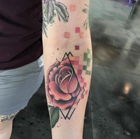 A true artist and lover of color, Katie has been tattooing for many years. Her work is versatile and adventurous, she loves taking on big, bold projects. She excels with portraits, strong lines, and watercolor style tattoos. Katie spends her free time hanging with her daughter, drawing, and practicing pole dancing.